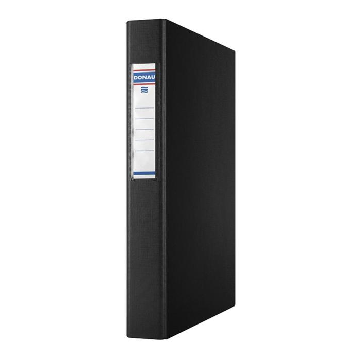 Zakladač so 4 krúžkami v tvare O a priemeru 25 mm, vyrobený z kartónu s hrúbkou 1,9 mm a gramážou 1170 g/m². Potiahnutý z vonkajšej strany ekologickou PP fóliou s plátennou štruktúrou o hrúbke 100 µm a z vnútornej strany podšívkou z bieleho papiera. Vymeniteľný obojstranný štítok na chrbte. Väčšie balenie 10 ks. Farba: čierna Šírka chrbta: 40 mm Rozmery: 265 x 320 x 40 mm Formát: A4