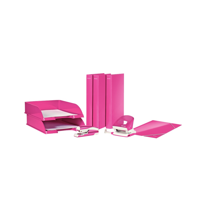 Lesklý vysokokvalitný laminovaný zakladač formátu A4 Maxi rady WOW v žiarivej farbe s možnosťou zakladania dokumetov v závesných obaloch a využívania indexov. D-krúžková mechanika pre väčšiu kapacitu a jednoduché prezeranie, prítlačná spona na fixáciu voľných listov. Šírka chrbta 40 mm, kapacita 250 listov. Farba: ružová