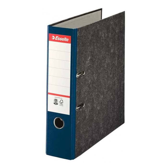 Zakladač formátu A4 so štruktúrovaným papierovým poťahom čierneho mramorového vzoru a pákovou mechanikou s prítlačnou lištou. Vybavený rado zámkom a nalepeným chrbtovým štítkom. Šírka chrbta 7,5 cm. Väčšie balenie 20 ks. Chrbát: 7,5 cm Farba: modrá