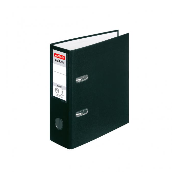 Zakladač maX.file protect formátu A5 s kvalitnou pákovou mechanikou, potiahnutý polypropylénovou fóliou. Vybavený chrbtovým krúžkom pre lepšiu manipuláciu, vreckom s vymeniteľným chrbtovým štítkom a uzatváracím mechanizmom. Vnútorný biely podlep. Šírka chrbta 7,5 cm. Formát A5 na výšku. Farba čierna. Väčšie balenie 10 ks.