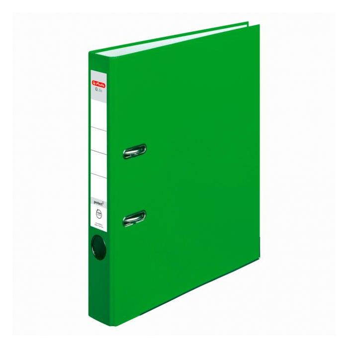 Pákový zakladač Q.file protect formátu A4. Šírka chrbta 5 cm. Materiál polypropylén, zásuvné vrecko, vnútorný biely podlep, lepenka 2mm, otvor na zadnej strane a radokrúžok pre lepšiu manipuláciu, kovová lišta. Farba svetlozelená. Balenie 25 ks.