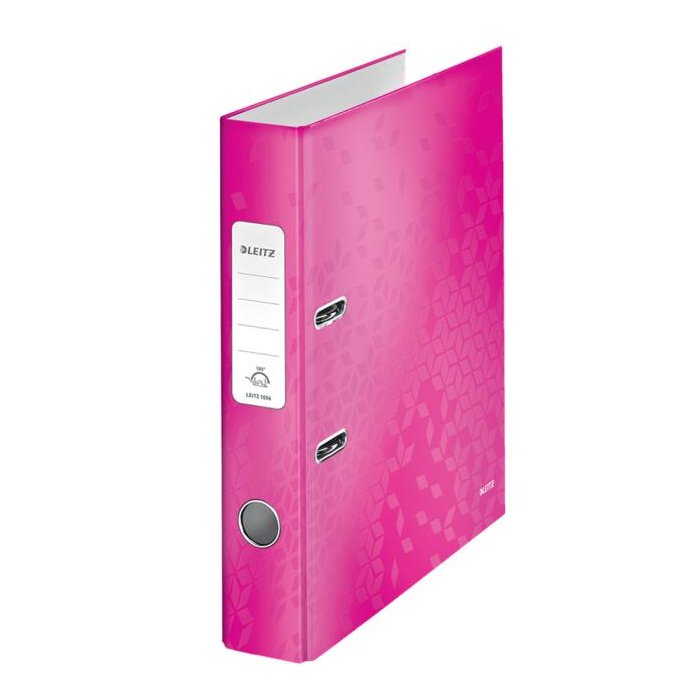 Pákový zakladač rady WOW v žiarivej metalickej ružovej farbe s dvojfarebným efektom. Unikátna patentovaná mechanika Leitz 180° poskytuje širšie otvorenie, možnosť zakladania väčšieho množstva papierov a o 20 % rýchlejšiu prácu so zakladačom. Vybavený chrbtovým krúžkom, rado zámkom a samolepiacim chrbtovým štítkom, ktorý môže byť v prípade potreby odstránený. Šírka chrbta 5 cm, kapacita 350 listov. Väčšie balenie 10 ks.