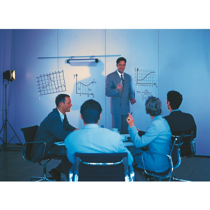 Zásobník EasyFlip s univerzálnym výklopným závesným systémom a nastaviteľným popruhom má rezacie zariadenie pre odrezanie fólie. Materiál kvalitný hliník. Súčasťou balenia rolka bielej fólie. Fólia na uľahčenie prezentácie Vašich nápadov a plánov s elektromagnetickým nábojom, ktorá priľne na akýkoľvek rovný povrch v miestnosti.