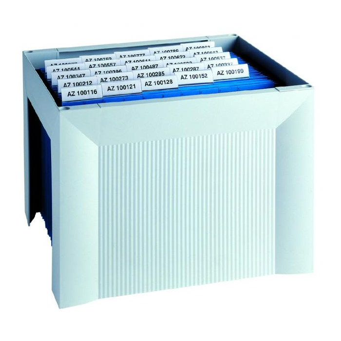 Zásobník HAN vhodný na závesné obaly A4 s prístupom zhora. Kvalitné prevedenie, jednoduchá montáž, možnosť nastavenia viacerých zásobníkov na seba. Gumené podložky zabraňujú kĺzaniu a šetria povrch pracovnej plochy. Kapacita cca 23 závesných obalov typu V. Rozmery (š x v x h): 355 x 260 x 320 mm Farba: svetlosivá