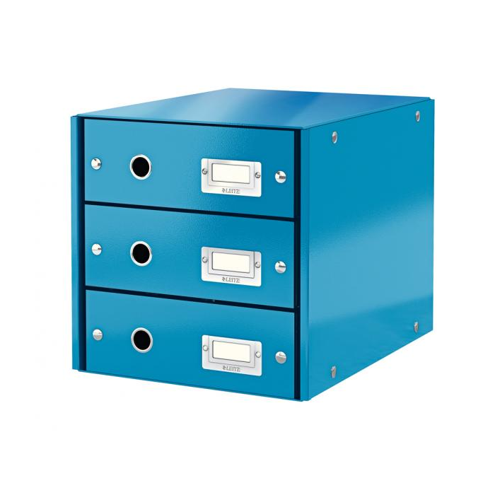 Zásuvkový box s 3 zásuvkami na formát dokumentov A4. Box je rozložiteľný pre úsporu miesta, keď sa nepoužíva. Kovové úchyty pre ľahkú manipuláciu so zásuvkami. Rámik na popisovací štítok. Laminovaný povrch pre lepšiu a trvalejšiu ochranu. Moderný design, ktorý vyzerá skvelo doma i v kancelárii. Veľkosť zásuviek odpovedá bežným kancelárskym rozmerom (na formát A4). Kovový úchyt pre jednoduché vytiahnutie zásuvky. Rámik na štítok pre ľahké popisovanie každej zásuvky. Vnútorné rozmery (ŠxVxH): 330 x 81 x 251 mm (na zásuvku). Farba metalická modrá.