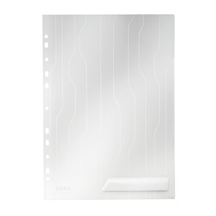 Unikátny závesný obal typu `L`, ktorý kombinuje vlastnosti euroobalov a obalov vďaka patentovanej skrývateľnej multiperforácii do špeciálneho puzdra. Obsahuje rohovú chlopňu, ktorá chráni vložený dokument a vrecko na popis obsahu s vymeniteľným štítkom. Vyrobený z kvalitného priehľadného PP s embosovaným vzorom. Hrúbka 200 um. Kapacita 40 listov papiera formátu A4. Farba: priehľadná Balenie: 5 ks