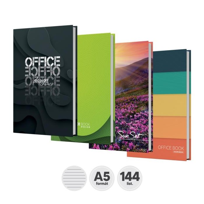 Záznamové knihy A5 sú vyrobené z bezdrevného písacieho papiera. Kniha má lepeno- šitú väzbu. Obálka je vyrobená z tvrdého kartóna, ktorý je potlačený rôznymi farebnými motívmi a potiahnutý laminom. Linajková - 144 listov.