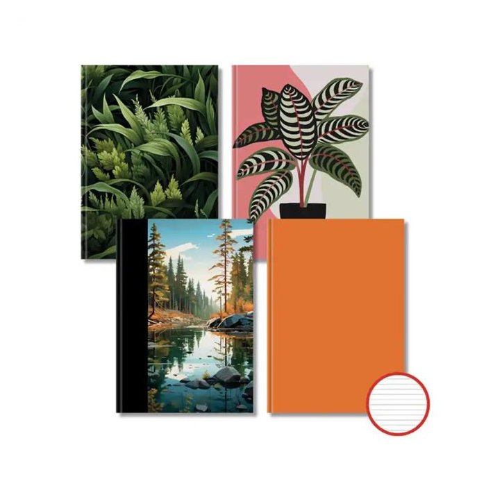 Záznamová kniha s bezdrevným papierom v pevnej väzbe s lesklou lamináciou, dodávané v mixe motívov.