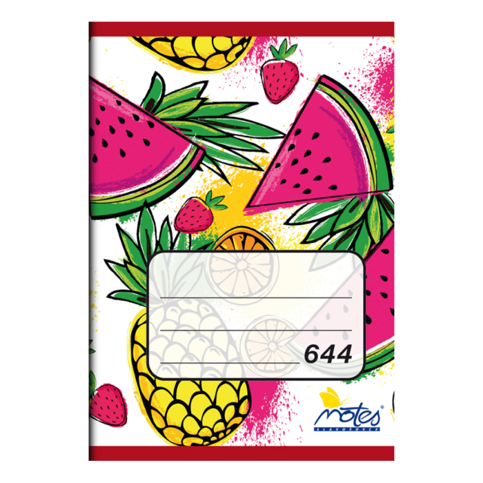 Zošity z bezdrevného papiera, 40-listové, obal polotuhý. Formát A6, úprava linajková. Výška riadka 8 mm. Dodávané v mixe 2 vzorov bez možnosti výberu konkrétneho vzoru. Väčšie balenie 10 ks.
