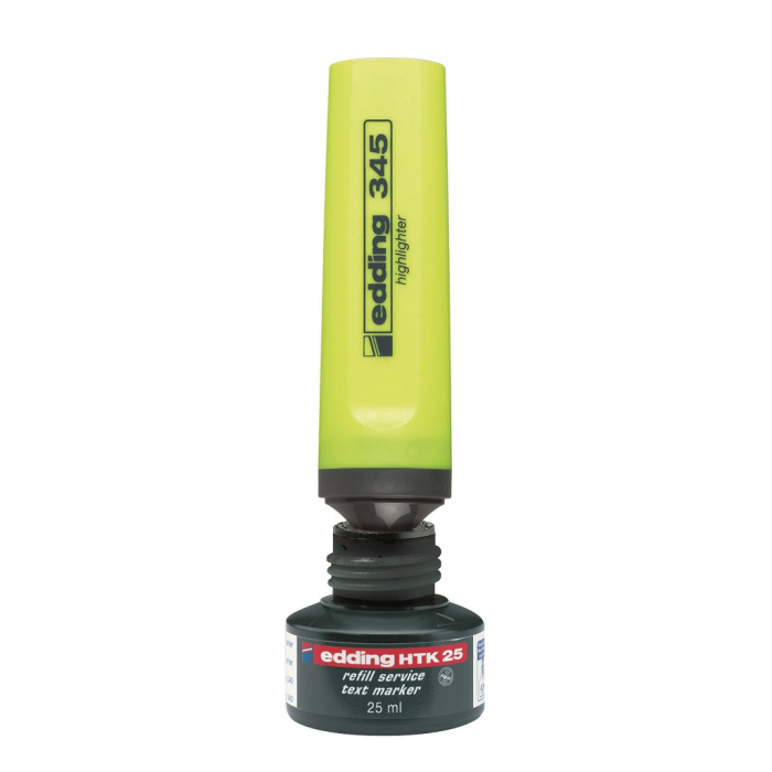 Popisovač so zrezaným hrotom so šírkou stopy 2 - 5 mm. Pre zvýraznenie textových pasáží, výstupov z atramentových tlačiarní, poznámok a pod. Vodovzdorný pigmentový atrament so silne svietivými a intenzívnymi farbami. Vhodný pre InkJet - pri zvýrazňovaní textov tlačených na atramentových tlačiarňach sa atrament nerozpíja. Dopĺňateľný atramentom HTK 25. Väčšie balenie 10 ks. Farba: žltá Šírka stopy: 2-5 mm