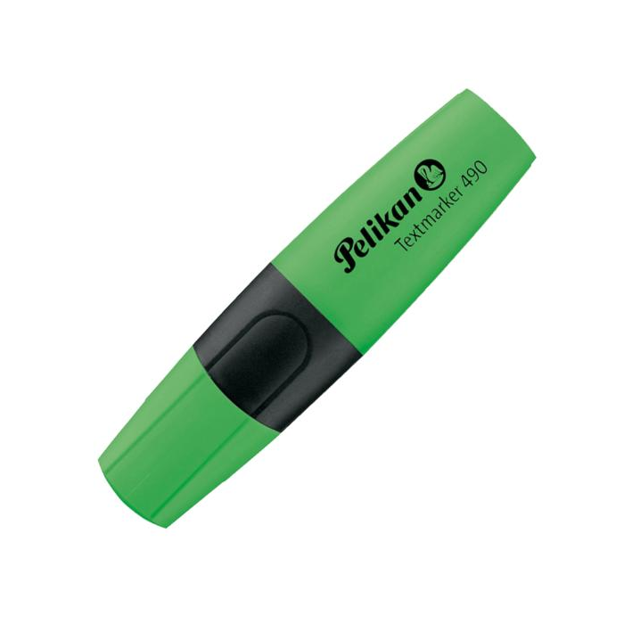 Zvýrazňovač Pelikan 490 osadený klinovým hrotom so šírkou stopy 1 - 5 mm. Plnený atramentom na vodnej báze, vhodným na všetky druhy papierov, odolný voči vysychaniu. Balenie v krabičke. Farba zelená.